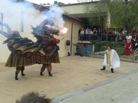 Representació durant la diada de Sant Jordi, juntament amb el grup de Teatre de Vallirana i els Diables Banyuts. Autor/a imatge