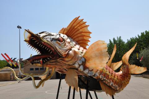 La bèstia es divideix en dues parts, per la meitat de cua a cap. Té cap cos i dues cues. Material i tècnica constructiva