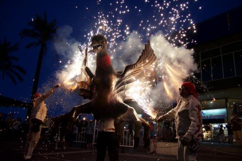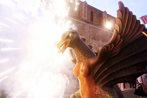 Cap d'àliga, tors de dona, ales barreja de ratpenat i àliga, potes d'àliga i cua de drac. Material i tècnica constructiva